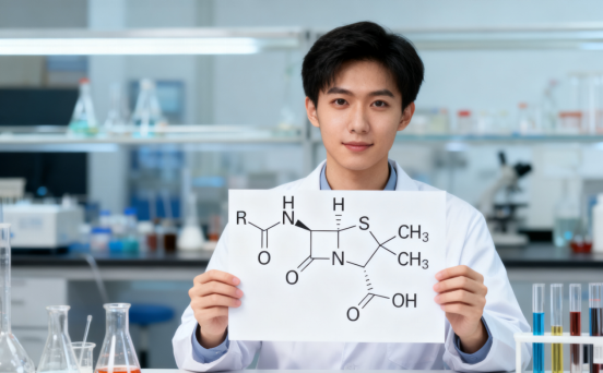 我,是一位精准的“拆墙专家”。细菌就像一座坚固的城堡,它的城墙(细胞壁)是其生存的关键。我的分子结构能巧妙地破坏细菌修建城墙的关键“脚手架”(转肽酶)。没有城墙保护的细菌,会因内部压力过高而“胀破”死亡。由于人类细胞没有细胞壁,所以我能精准打击敌人,而不伤及自身。这正是我神奇与伟大之处。