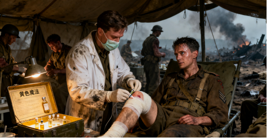 二战的硝烟让我重获新生,枪炮造成的创伤,为细菌提供了绝佳的繁殖温床。感染,这个看不见的杀手,比子弹更致命地吞噬着士兵的生命。弗洛里和钱恩团队在成堆的旧论文中重新发现了我的价值,历经艰难终于提纯了我。我终于被大规模制造出来,随着盟军的补给,我被送往战地医院。当医生们看到,那些濒临截肢甚至死亡的士兵,在注射了我之后,高烧退去,伤口愈合,生命被奇迹般挽回时,抗生素治疗的黄金时代开始了!
